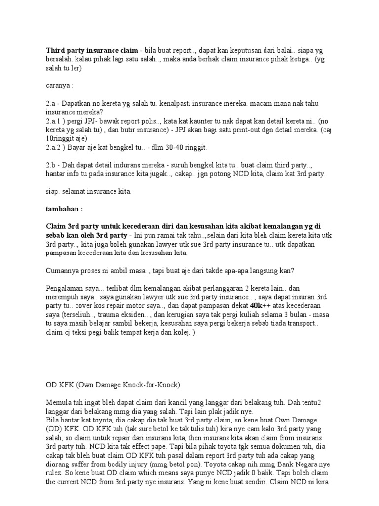 Claim Form completed by policyholder the attending Doctor mandatory Original Bills Receipt mandatory Police Report applicable for Motor accident mandatory. Insurans pihak ketiga adalah insurans paling asas yang boleh korang perolehi. Kali ni saya nak share bagaimana untuk claim cermin kereta guna insurans.